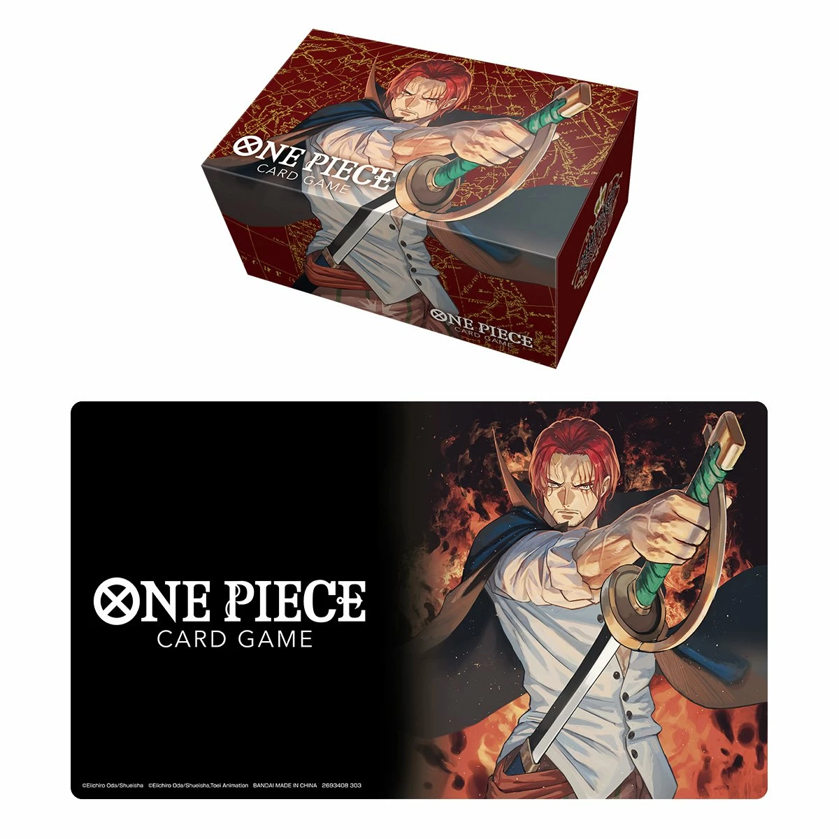 Améliorez votre confort de jeu et protégez votre collection de cartes One Piece Card Game avec ce lot d’accessoires. Il contient un tapis de jeu et une boite de rangement comportant de nouvelles illustrations d’un personnage populaire de One Piece : Shanks !