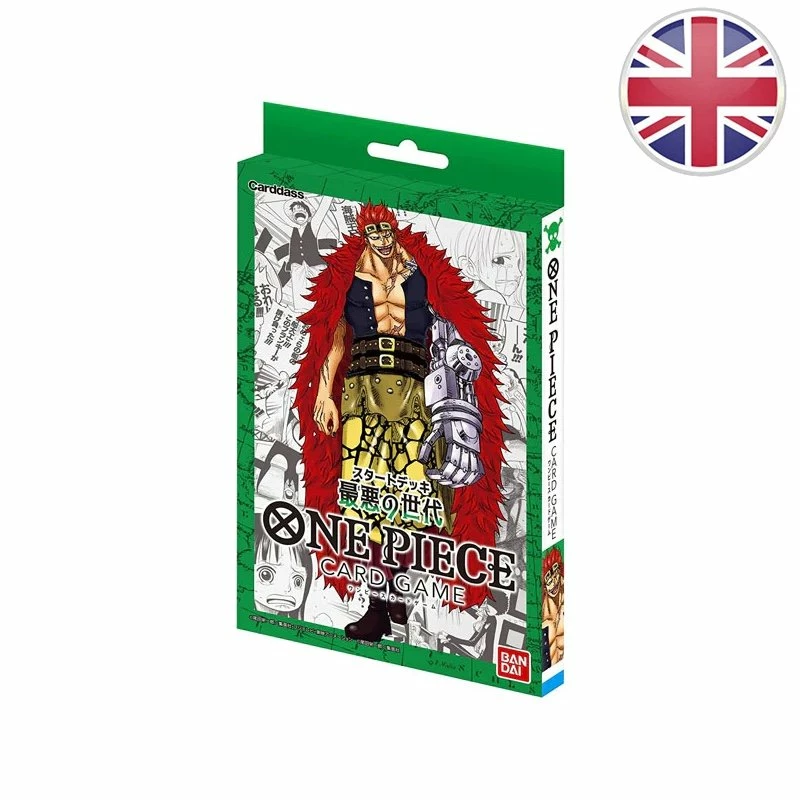 Ce deck de démarrage met en avant La Pire Génération ! C’est un deck prêt à jouer de 50 cartes accompagné d’un leader et de 10 cartes DON!! C’est le produit idéal pour vous lancer dans vos premières parties à la découverte du jeu de cartes One Piece !