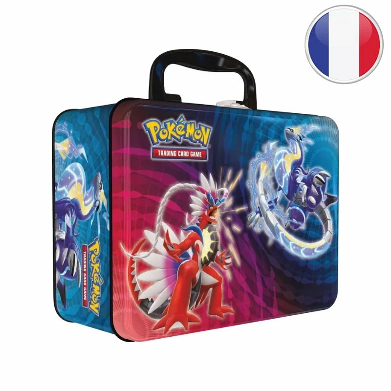 Véritable trésor, ce coffret de collection se compose d’une magnifique boîte métallique à l’effigie des Pokémon légendaires Koraidon et Miraidon dans laquelle vous pouvez ranger votre collection. Vous y trouverez de nombreuses surprises impossibles à avoir ailleurs dont 1 mini-portfolio pour ranger vos cartes préférées et 4 pages d’autocollants !