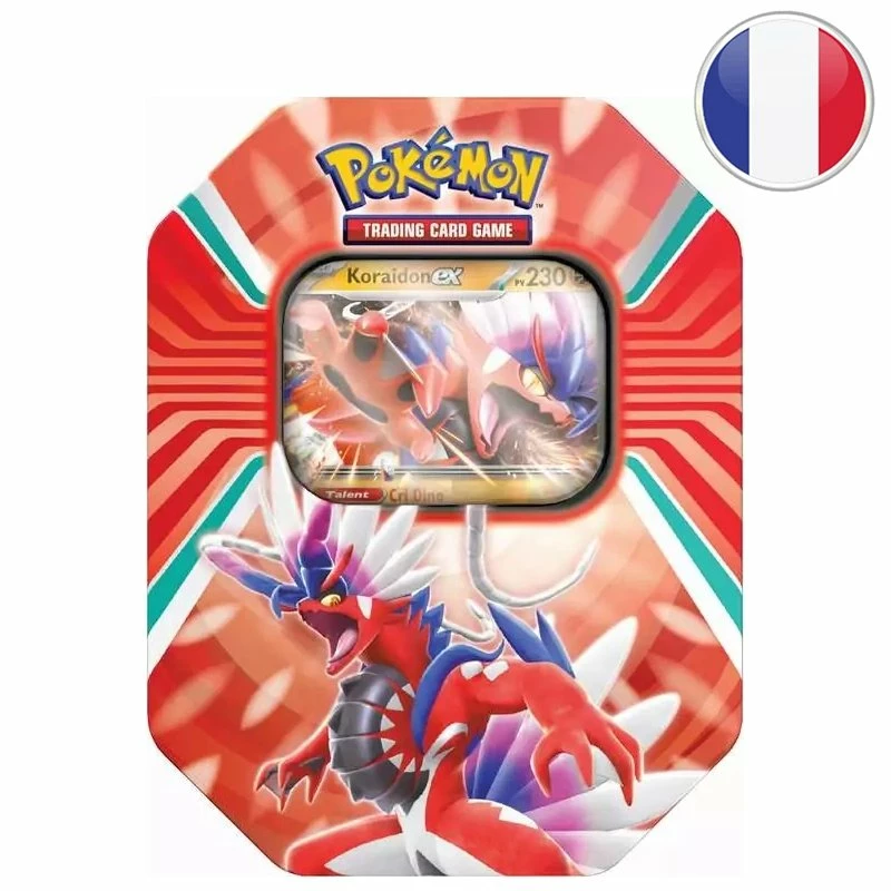 - 1 boite métallique à l’effigie de Koraidon-ex pour ranger vos cartes