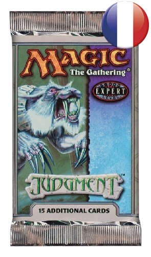 Un booster scellé de 15 cartes de l’édition Jugement. Toutes les cartes sont en français